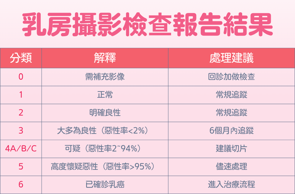 乳房影像報告常出現「BI-RADS」分級系統,定義如下: