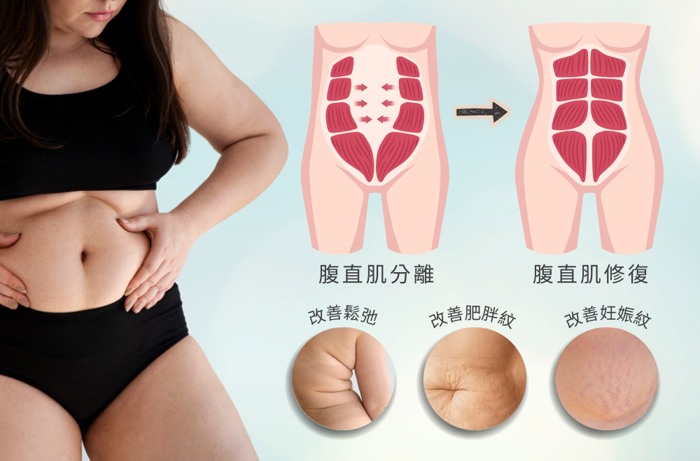 懷孕撐開腹壁後,肌肉與皮膚常無法完全恢復。